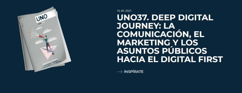 IDEAS LLYC, el Centro de Liderazgo a través del conocimiento de la consultora, acaba de lanzar Deep Digital Journey, el número 37 de la Revista UNO. Está disponible desde hoy en su edición digital y en español. La publicación reflexiona sobre el camino de la comunicación, el marketing y los asuntos públicos hacia el digital first.