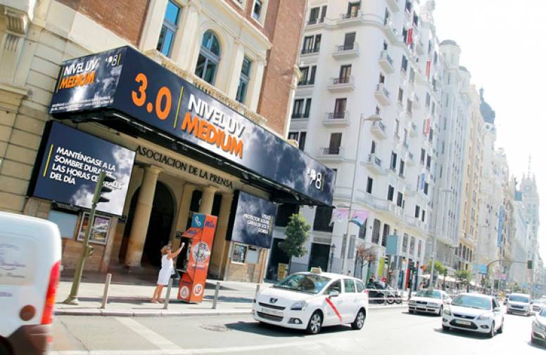 La llegada de las altas temperaturas pueden provocar afectar a los viandantes. Por este motivo y con la idea de ofrecer un buen servicio público a los ciudadanos, Súper 8 Media ha puesto en marcha una iniciativa por la cual se informará en tiempo real a través de las pantallas exteriores del cine de Gran Vía del nivel de graduación de los rayos UV en la capital. Además, con cada nivel (very high, médium y good) se harán recomendaciones en las pantallas a modo de aviso, y con vistas a dar un servicio público y social en la ciudad de Madrid.