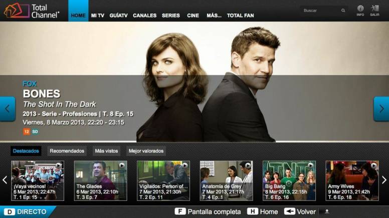 La plataforma de televisión de pago online Total Channel, desarrollada por Overon y Abertis en España, ha presentado oficialmente hoy su oferta de contenido, que se puede disfrutar desde abril en versión Beta pública hasta junio, cuando esté 100% operativa. Pendiente aún de cerrarse las negociaciones con distribuidores y productores de contenidos para reforzar su oferta ante los consumidores, la plataforma arranca con los 12 canales de pago más representativos del mercado: AXN HD, AXN White HD, Calle 13 HD, Cosmopolitan HD, Fox HD, Fox Crime HD, National Geographic HD, Paramount Comedy, SyFy HD, TNT HD, Canal Historia y Crimen & Investigación, emitiendo su contenido en streaming a través de la red, la mayoría en alta definición, y con caracter social y multidispositivo.
