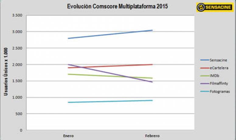 El portal de entretenimiento SensaCine.com se ha convertido en la web nº 1 de cine en España, según los datos oficiales de comScore de febrero 2015 en su panel multiplataforma (desktop) con más de 3 millones de usuarios únicos.