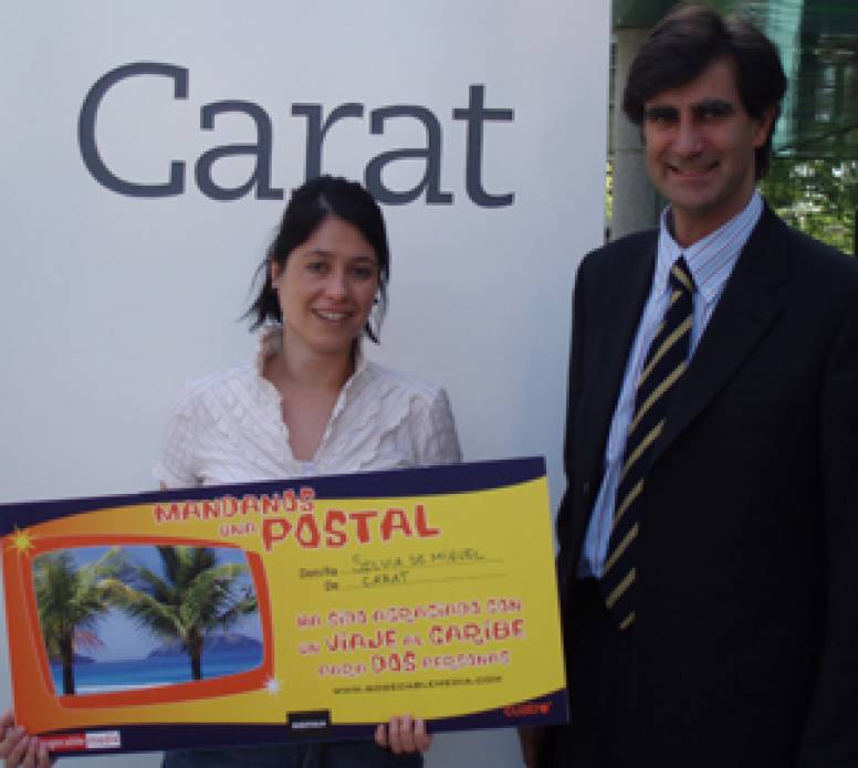 Sogecable Media ha entregado un super cheque canjeable por un viaje al Caribe para dos personas a Silvia de Miguel, de Carat.