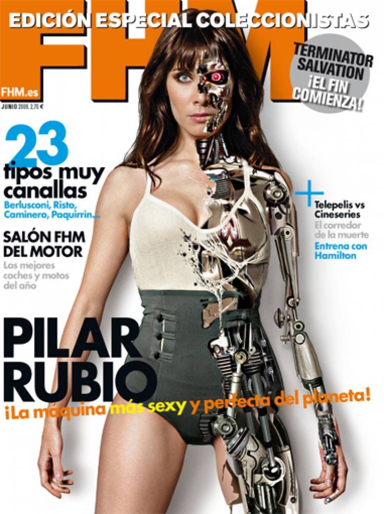 En la promoción de ‘Terminator Salvation’, Sony Pictures no hará nada parecido con otra publicación en España, y vuelve a apostar por ‘FHM’ como hizo con los estrenos de ‘Ángeles y Demonios’ y ‘Hancock’. En esta ocasión, y por primera vez, la revista transforma a la protagonista de su portada en uno de los impactantes personajes de película, algo mucho más espectacular al tratarse de Pilar Rubio, la triunfadora de la ‘Lista FHM de las 100 Mujeres más Sexys del Mundo’ de 2009.