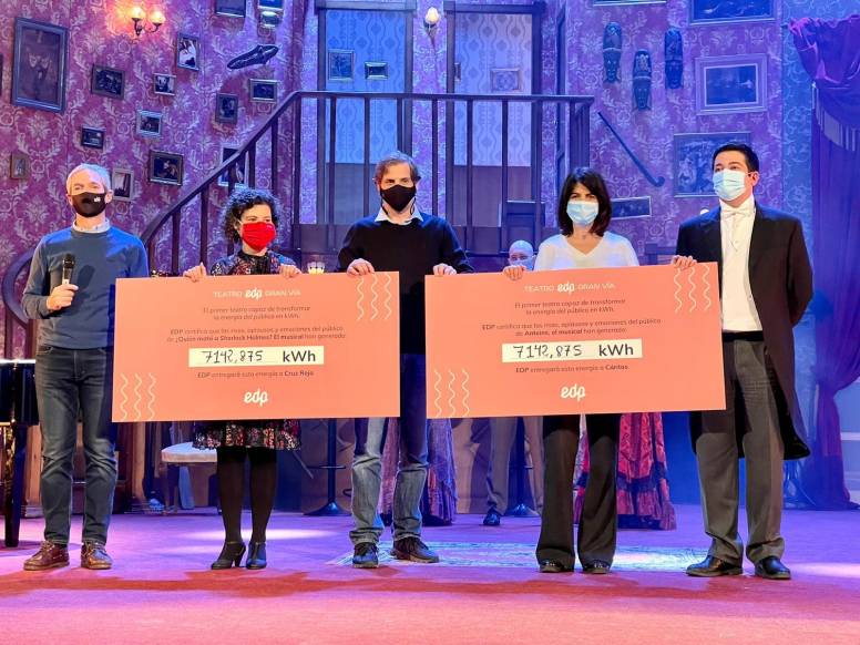 La compañía energética EDP, patrocinadora del Teatro EDP Gran Vía de Madrid, ha entregado los 14.285,75 kWh generados en las funciones de ¿Quién mató a Sherlock Holmes? y Antoine a Cáritas y Cruz Roja Española.