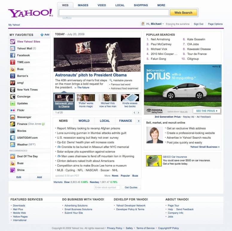 Con la nueva página de inicio de Yahoo!, estrenada ayer en Estados Unidos, las personas pueden añadir diferentes aplicaciones y acceder a ellas desde su ordenador o su terminal móvil. La home ya disponible para los usuarios estadounidenses en http://yahoo.com/trynew y en los próximos días estará también operativa en Francia, India, Reino Unido, así como en los dispositivos móviles.