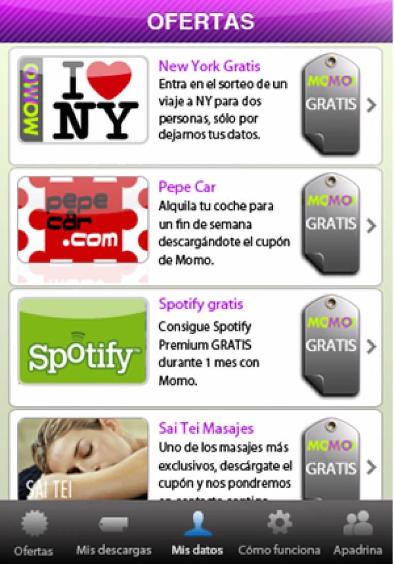 La plataforma española, gracias a la alianza con Ofertix, uno de sus socios en esta andadura, cuenta con una base de datos de usuarios (5 millones) abiertos a recibir ofertas y promociones. “Mommo nace con la vocación de ser un nuevo canal de comunicación sencillo y directo entre empresas que tienen ofertas atractivas por comunicar y usuarios sensibles a recibir este tipo de promociones y descuentos”, comenta Diego Martínez, creador de la firma. “La plataforma ha sido concienzudamente diseñada para que las empresas anunciantes puedan optimizar sus campañas promocionales, disponiendo en tiempo real de los datos críticos sobre la evolución de cada campaña".
