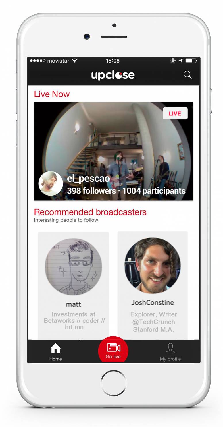 Upclose ofrece un entorno social, para que los creadores de contenido puedan desde cualquier lugar y en cualquier momento, usando su móvil u ordenador, emitir vídeo en directo conectando con sus fans o followers de una manera interactiva, inmediata y auténtica. En verano de 2014, para analizar la reacción de los usuarios, salió al mercado una versión básica de upclose. En tan solo pocas semanas, artistas tan variados como El Pescao, Aqeel (Dj, cantante y productor de los Zombie Kids), Lady Cherry, Swan Fyahbwoy o Carmen París, así como locutores de Los 40 Principales, Máxima FM o EDM Radio, empezaron a conectar en directo con sus fans desde el estudio, ofreciendo así una experiencia digital nueva.