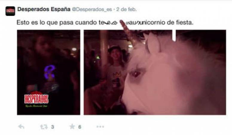 Desperados, del grupo Heineken, es una de las marcas más activas en Twitter y eso le obliga a estar constantemente al día de la conversación mantenida por su comunidad en las redes sociales, así como adelantarse a las tendencias para crear un contenido capaz de impresionar a los jóvenes. Así, inspirada por un bug de Twitter, fue la primera marca en emitir tuits ocultos (que al ser clicados revelan un mensaje oculto) o con múltiples saltos de línea, para enfatizar el contenido.