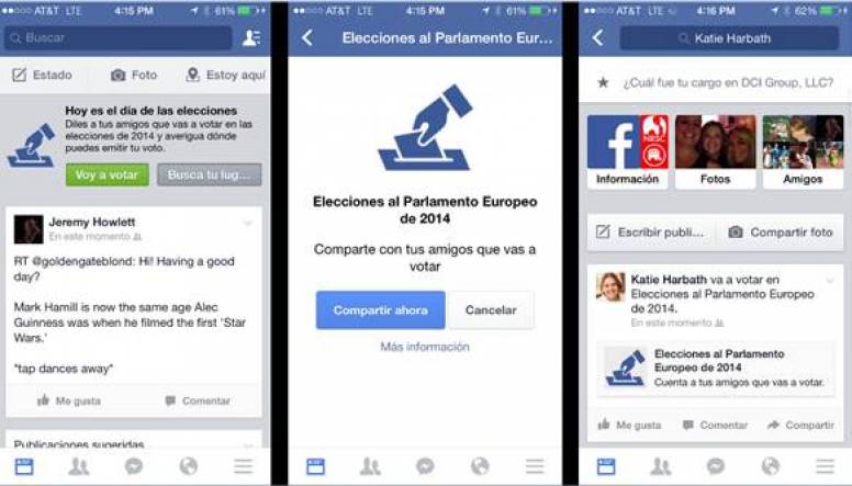 El próximo domingo 25 de mayo Facebook activará el botón ‘Voy a votar’ para ofrecer a los usuarios españoles la oportunidad de votar durante las elecciones al Parlamento Europeo. Al hacer clic en este botón, los usuarios pueden resaltar su condición de votante a sus amigos de Facebook, pero manteniendo el partido en anonimato.