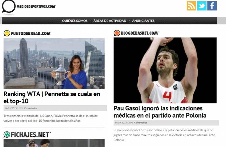 El grupo de ‘Medios Deportivos’, cuenta con un total de 588.000 usuarios únicos y   5,2MM de páginas vistas (Desktop y mobile, comScore 2015). A través de Internet y dispositivos móviles, ‘Medios Deportivos’ ofrece una amplia gama de servicios, información de calidad y análisis detallado del sector deportivo con un alto nivel de rigor y exigencia. El acuerdo adquirido, incorpora los portales temáticos fichajes.net, deportevalenciano.com, futboldeprimera.es, puntodebreak.com o blogdebasket.com.