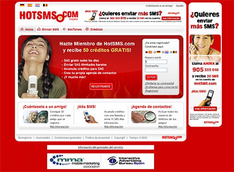 Hot Sms permite el envio de sms gratuitos con publicidad