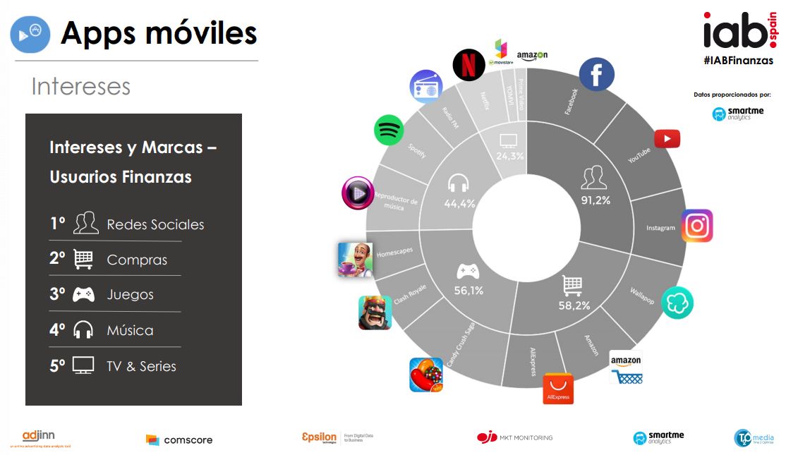Intereses en marcas y players más utilizados de los usuarios de apps financieras | Fuente: IAB Spain