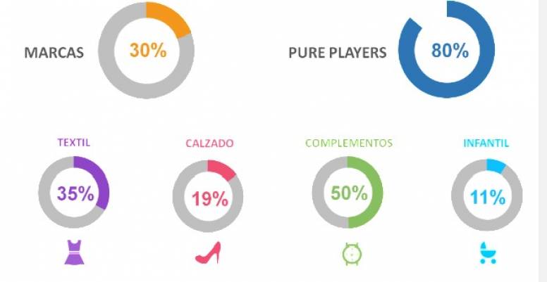 Asimismo, el informe señala que el sector textil utiliza todos los medios a su alcance para conseguir aumentar las ventas, siendo las distribuidoras online puras las que más tácticas de marketing digital emplean: crean acciones de cross-selling en un 47% frente al 5% de las marcas globales (siendo el sector infantil el que más implementa dichas acciones con un 11%); Las alertas son utilizadas en un 40% por los distribuidores online frente al 6% de las marcas fabricantes. Los cupones y códigos de descuento son empleados en un 33% y 14% por distribuidores online y fabricantes, respectivamente; destacando al sector textil con un 22% como el que más los usa. Por último, a pesar de que el sector de complementos no utilizaba ninguna de las demás tácticas, destaca con un 29% en el envío de newsletters y noticias, junto al 19% del área textil y el 7% de los pure players.