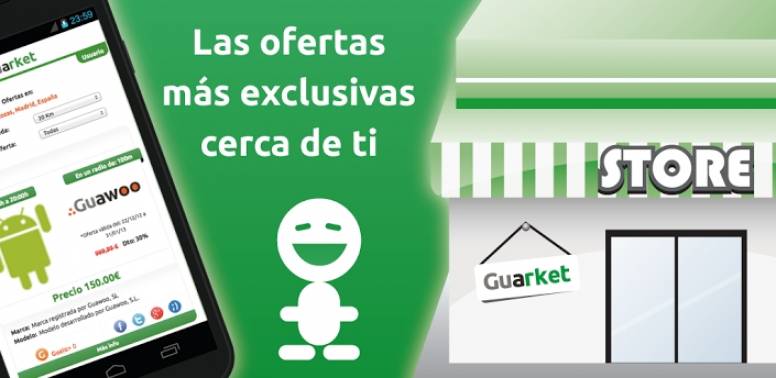 Conjugando geolocalización y ofertas anticrisis nace Guarket. Se trata una plataforma de ofertas lanzada por la compañía de servicios tecnológicos Guawoo, que publica ofertas low cost patrocinadas por comercios, tiendas o empresas que ofrecen servicios. Las novedades de este servicio, frente a otras plataformas similares, es que Guawoo elimina los costes variables por unidades vendidas; es decir, sólo se paga por la publicación de la oferta y el 100% de los ingresos obtenidos se quedan directamente en el comercio o tienda.