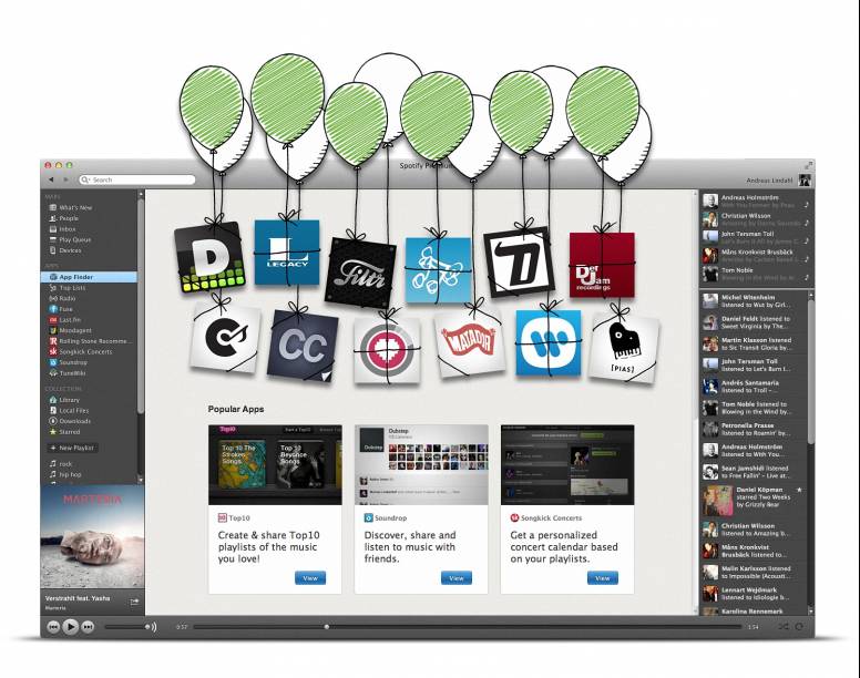 La plataforma social musical Spotify refuerza su oferta de aplicaciones para los usuarios con doce nuevos desarrollos que se han hecho realidad tras alcanzar distintos acuerdos con sellos discográficos y distribuidoras como Universal, Sony, Warner, Def Jam, Domino, Matador, PIAS y X5.