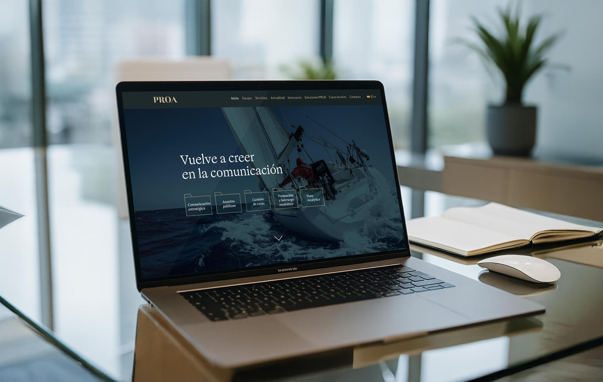 Fruto de los cambios y esta estrategia de crecimiento y posicionamiento en el mercado, PROA Comunicación, ha actualizado su identidad digital recientemente. Con un diseño más claro, intuitivo y accesible, su nueva web ofrece una experiencia que refleja de manera auténtica la personalidad de la consultora y facilita el acceso a toda su oferta de servicios.