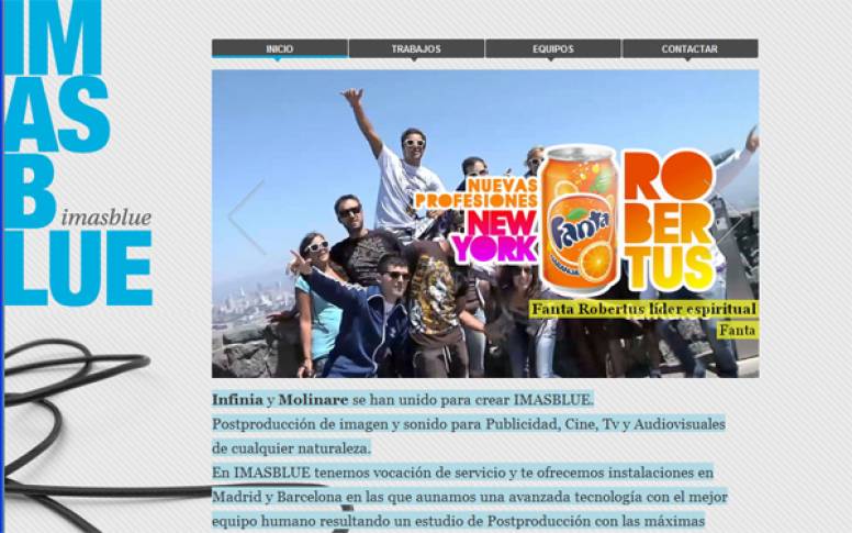 Tras anunciar su unión meses atrás, Infinia y Molinare han puesto en marcha Imasblue (www.imasblue.com), una nueva empresa de servicios de post producción con presencia en Madrid y Barcelona participada al 50% por los responsables y socios de ambas empresas. En realidad Imasblue nace de la unión de los departamentos de postproducción de Molinare e Infinia, por lo que estas seguirán funcionando en otras actividades (servicios de producción, servicios para canales temáticos, etc.) pero nunca trabajarán para la alta postproducción (proyectos de imagen y sonido para publicidad, cine, televisión y audiovisuales de cualquier naturaleza). “Para eso ha nacido, con vocación de perdurar, la nueva empresa, que se apoya en la capacidad y servicio de los dos grupos que intervienen en el proyecto, complementarios entre sí”, explica Esteban Zabala, director comercial de la empresa en Madrid y Barcelona.