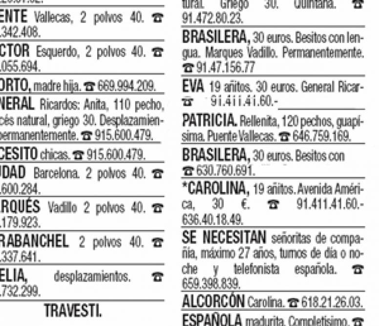 Los anuncios de contactos en la prensa tienen los días contados. El presidente José Luis Rodríguez Zapatero anunció ayer durante la sesión final del Debate del Estado de la Nación, que eliminará la publicidad de contenido sexual (prostitución y contactos) de la prensa española. Desde el Gobierno se están estudiando distintas fórmulas legales para evitar que estos anuncios sigan siendo un reclamo en los medios de comunicación, para alimentar el negocio de la prostitución: “Mientras sigan existiendo anuncios de contactos se estará contribuyendo a la normalización de esta actividad, por lo que estos anuncios deben eliminarse”,señaló Zapatero como parte del Plan Integral contra la Trata de seres humanos para la explotación sexual. En referencia a estas declaraciones, la Asociación de Editores de Diarios Españoles, AEDE, considera que, si el Gobierno entiende que debe suprimirse, debería adoptar medidas para prohibir la prostitución y en ese caso, los periódicos, dicen desde AEDE, nunca darían cabida a ningún tipo de publicidad referida a dicha práctica. Además han añadido que en los últimos años los periódicos han sufrido importantes limitaciones respecto a otros medios, como la supresión de anuncios societarios, alimentos destinados a la infancia y juventud o las directivas europeas sobre etiquetado de consumo energético, por no hablar de las limitaciones autonómicas, nacionales y europeas para la publicidad del alcohol, el tabaco o el juego.