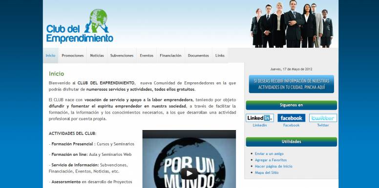 Club del Emprendimiento es la denominación de una nueva plataforma que nace con el objetivo de convertirse en una auténtica comunidad de emprendedores donde los usuarios podrán disfrutar de diversos servicios y actividades, todos ellos de carácter gratuito. “El club nace con vocación de servicio y apoyo a la labor emprendedora, teniendo por objeto difundir y fomentar el espíritu emprendedor en nuestra sociedad, a través de facilitar la formación, la información y los conocimientos necesarios, a los que desarrollan una actividad profesional por cuenta propia”, explican sus responsables en la web oficial (www.clubdelemprendimiento.com).