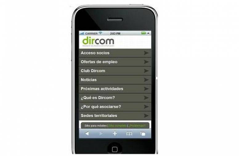 La Asociación de Directivos de Comunicación, Dircom, ha lanzado su página web para dispositivos móviles IPhone y adaptada para Blackberry y otros terminales de teléfono de esta gama. En la web, los usuarios pueden acceder a una selección de los contenidos principales, las últimas noticias, la agenda de actividades, últimos nombramientos o los últimos puestos para directivos de comunicación publicados por empresas de cazatalentos a través de la web dircom.org. La idea de futuro que Dircom tiene para esta aplicación es ir incorporando paulatinamente nuevos contenidos y funcionalidades a su sitio para dispositivos móviles con la intención de mejorar su servicio a los socios y al público en general.