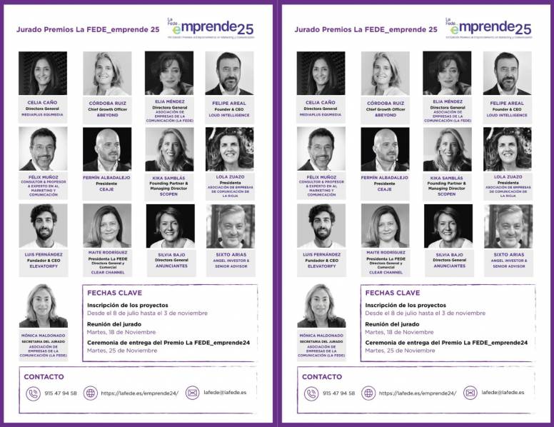 La Asociación de Empresas de Comunicación, La FEDE, ha presentado la composición del jurado de la VIII edición de los Premios La FEDE Emprende, que se celebrarán el próximo 25 de noviembre. Estos galardones buscan reconocer los proyectos empresariales más innovadores y creativos en el ámbito del marketing, la publicidad y la comunicación.