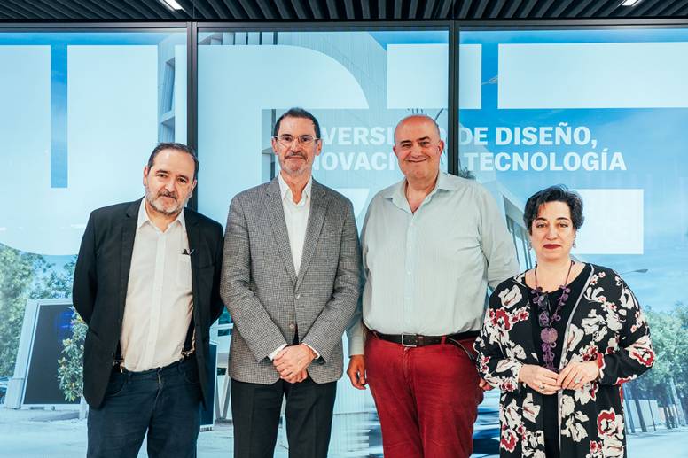 De izquierda a derecha: Rafael Povo, Director del Grado en Publicidad y Creación de Marca de UDIT, José Carlos Gutiérrez, Presidente de La FEDE, Juan Cayón, Rector de UDIT y Elia Méndez, Directora General de La FEDE