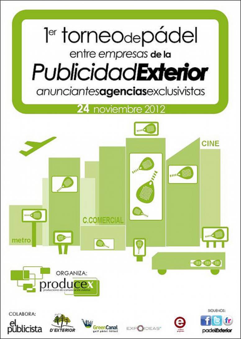 El I Torneo de Pádel entre empresas de la Publicidad Exterior se celebrará en las instalaciones de Green Canal Pádel y cuenta con la colaboración de El Publicista, D´Exterior, Expo Ideas y Explora Proyectos. Más información en Twitter , Facebook y Flickr.