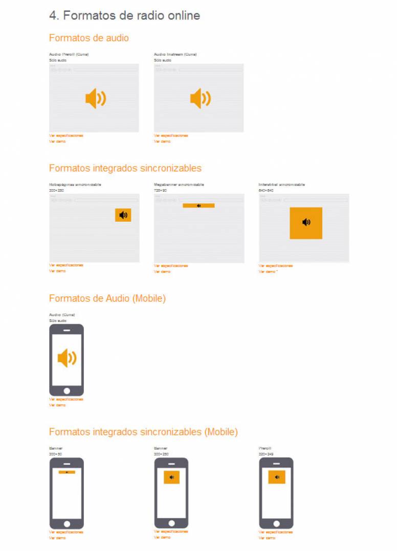 La asociación IAB Spain ha lanzado en España los “Estándares de Formatos Publicitarios de Radio Online”, un proyecvto similar al que ha desarrollado para otras áreas como la publicidad destinada a formatos display o a publcitarse en el canal mobile, por ejemplo, y que tiene por objetivo facilitar el funcionamiento y profesionalización del sector publicitario digital. Los nuevos estándares reúnen los formatos más utilizados en radio online, y tienen igualmente como objetivo dinamizar la inversión y potenciar la radio online como medio publicitario digital.