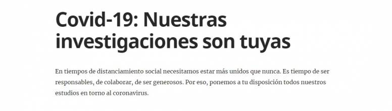 Ante la crisis sin precedentes que estamos viviendo es el momento de aunar fuerzas para poder superarla cuanto antes y de la mejor manera. Todos podemos poner nuestro granito de arena para paliar esta situación, pero sin duda, las empresas pueden tener un impacto mayor y aportar más valor en sus respectivas áreas. Ipsos ha querido dar un paso en este sentido y pondrá a disposición de todo el público sus investigaciones sobre el COVID-19, tanto las realizadas en España como en el resto del mundo. Ya se pueden consultar las investigaciones realizadas hasta ahora en esta web, donde se irán publicando también todas las que se hagan a partir de este momento sobre este tema con acceso libre.