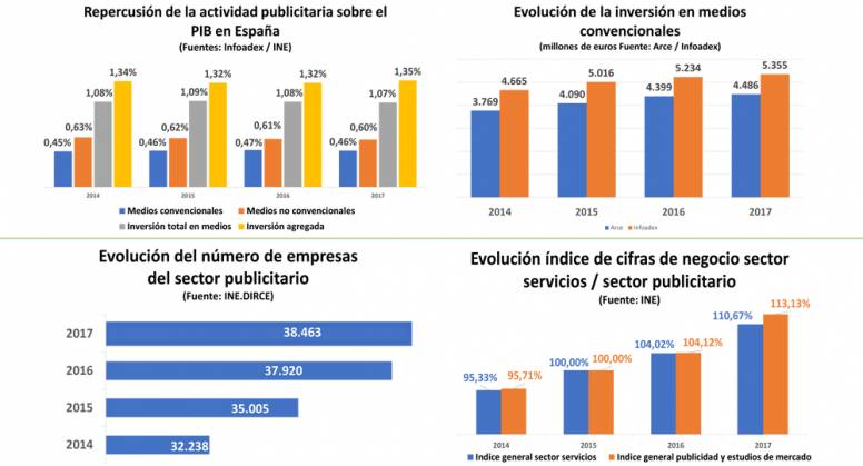 Del análisis del Observatorio de la Publicidad se deduce que el mercado global publicitario ha mantenido un crecimiento estable desde 2013. En este Observatorio se citan datos a escala europea que indican que esta industria genera más de 6 millones de puestos de trabajo en la UE (2,5% del empleo de la UE) y que cada euro invertido en publicidad revierte en 7 euros para la economía europea (aproximadamente el 4,6% del PIB Europeo).