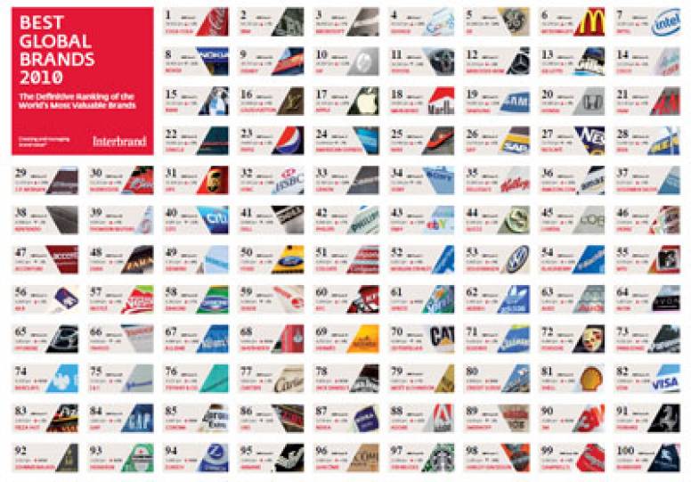 Por su parte las marcas internacionales que más han visto aumentar su valor han sido Google, Apple y Blackberry, las constantes innovaciones en los productos y el lanzamiento de nuevos como el Ipad, han hecho que estas marcas hayan aumentado su valor por encima del ratio del 30%. La cara contraria la ponen los servicios financieros, a excepción de JP Morgan que crece un 29%, mientras que en UBS o Citi vuelve a mermar el valor de marca. Chanel, Ralph Lauren o BP son algunas de las que han desaparecido este año y que han hecho que sus puestos hayan sido ocupados por un total de 10 nuevas marcas que gracias a su gestión han conseguido un puesto en el ranking. Llama especialmente la atención Nokia, que va perdiendo valor debido a la fuerte sombra que le hacen Apple, Blackberry y Samsung. Destaca también el sector del lujo, cuyas marcas, Cartier, Armani, Louis Vuitton, Gucci, Tiffany & Co y Hermes siguen en aumento gracias al excepcional servicio al cliente y al enfoque en crear experiencias únicas en las tiendas, lo que les ha permitido mantenerse fuertes, aún cuando los consumidores redujeron el gasto.