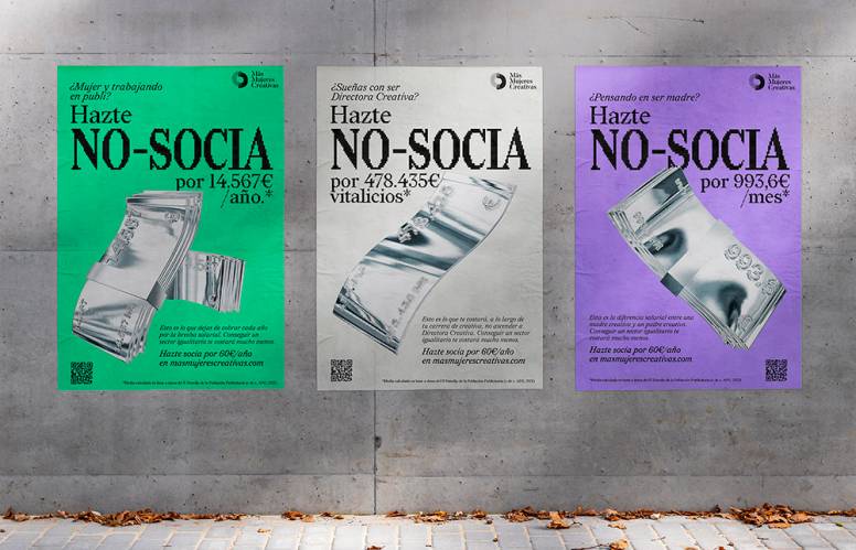 Más Mujeres Creativas presenta Hazte no-socia, su primera campaña de captación de socias desarrollada por la agencia Miller O’Connor. A través de este call to action, la campaña compara el coste de la cuota de la asociación con lo que supone no hacer nada para frenar la desigualdad de género en el sector. Las distintas ejecuciones de la campaña han utilizado datos reales extraídos del II Estudio de la Población Publicitaria (c de c, APG, 2021) para visibilizar la situación y animar a todas las personas del sector a formar parte de la asociación.