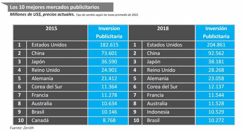 En cuanto a la inversión publicitaria en Asia Pacífico, la previsión es que crecerá un 6,3% este año, es decir, un punto porcentual por encima de lo pronosticado en el anterior informe, gracias a las grandes inversiones realizadas en el sector político en Filipinas para las elecciones de mayo de 2016. También en Europa Occidental, gracias a las mejores situaciones en Bélgica, Finlandia, Alemania, Italia, Noruega, Portugal y Suecia se prevé un crecimiento este año del 3,6% por encima del 3,5% de junio.