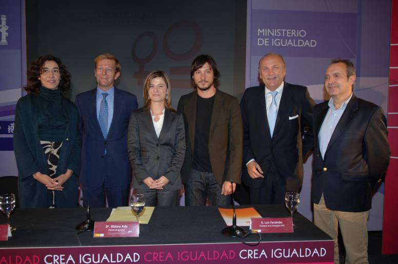 La ministra de Igualdad, Bibiana Aído, acompañada de la secretaria de Estado de Comunicación, Nieves Goicoechea, y del presidente de la Corporación RTVE, Luis Fernández, entregó el III Premio Mujer y Publicidad “Crea Igualdad” a la campaña “Ellos también pueden” de Puntomatic, realizada por la agencia Shackleton para la empresa Persan, por su llamamiento explícito a la corresponsabilidad en el hogar, valor que se incluye en la Responsabilidad Social de la compañía.
