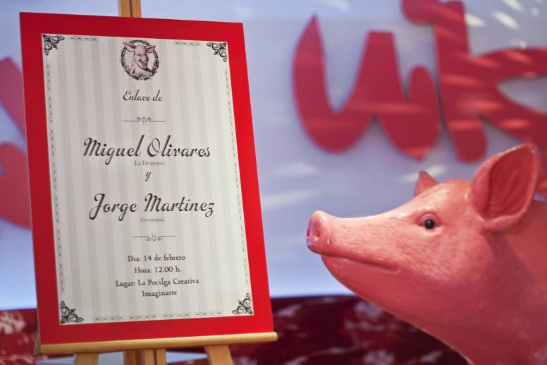 Durante la jornada, que verá a la agencía caracterizarse para la ocasión, participarán estudiantes de la Universidad de Alicante y del CEU Cardenal Herrera de Valencia, que harán las veces de elegantes invitados y testigos de la ceremonia presidida por Warren, el cerdo que preside la Pocilga. En el transcurso de la misma podrá escucharse música en directo, posar ante el “fotógrafo oficial con chaleco de explorador” e incluso asistir a un peculiar espectáculo de magia. El casamiento, que incluye un original sistema de “divorcio-express” (por si acaso la pareja no cuaja, según declaran los responsables de la iniciativa) será presidido por un ministro proporcionado por la propia agencia Imaginarte y se podrá seguir además a través de Facebook y Twitter, así como en videostreaming.