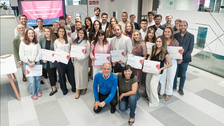 Los veintiséis alumnos del Programa en gestión de Medios, Datos y Contenidos de la Asociación de Agencias de Medios recibieron de la mano del presidente de AM, Óscar Dorda, de sus profesores y del director de AM, Leo Farache, los diplomas que acreditan haber superado este programa que ha cumplido treinta y dos ediciones.