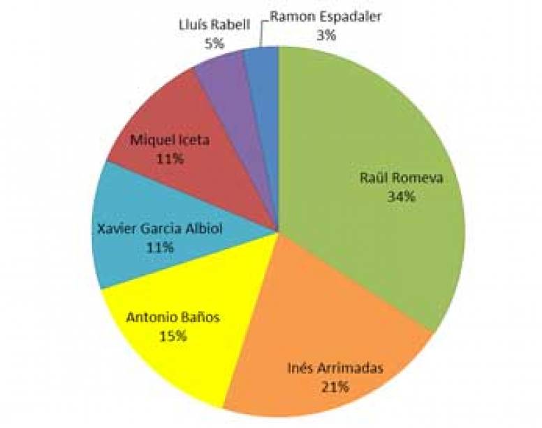 Se puede comprobar como los candidatos han modificado su comportamiento a lo largo de la campaña electoral. De esta manera Inés Arrimadas se sitúa líder con un 31% de respuestas, cuando la semana pasada su porcentaje era cero. En siguiente lugar se sitúan el candidato de la CUP y Xavier García Albiol, ambos con un 22%.