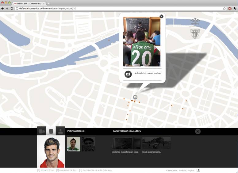 “Ser aficionado de un equipo como el Athletic supone muchas cosas, como orgullo o tradición y, desde hoy, además supone el honor de poder estrenar la camiseta de tu equipo antes que los jugadores. Pero como otros honores conlleva una misión: la de rellenarla de recuerdos y vivencias de la ciudad, para que los jugadores sientan cerca a su afición cuando jueguen lejos de casa”, detallan desde Doubleyou (www.doubleyou.com), la agencia responsable del proyecto. En realidad esta es la esencia de la propuesta con la que la agencia respondió al encargo, por parte de la marca Umbro y el Athletic Club de Bilbao, para presentar su segunda indumentaria a sus aficionados y al resto del mundo del fútbol.