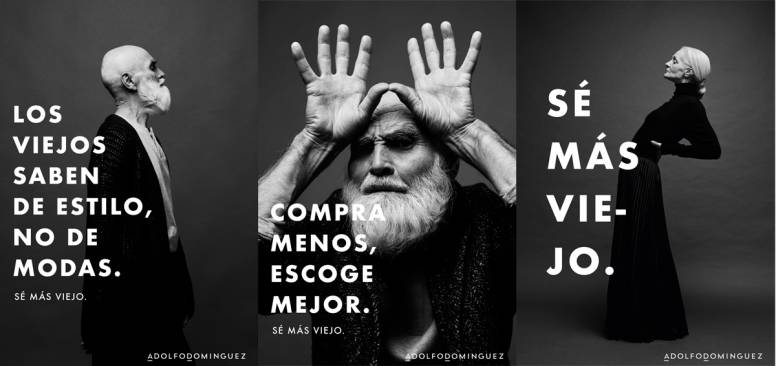 El trabajo gráfico de China para Adolfo Domínguez 'Sé más viejo', que reivindica su esencia como firma de moda de autor, apostando por la sostenibilidad de lo duradero y el estilo frente al fast fashion y apelando a la sabiduría que aporta la vejez, ha sido galardonado con el Gran Premio de la XX edición de los Premios Nacionales de Creatividad que se han entregado este sábado en San Sebastián, como clausura al certamen de la creatividad española c de c 2019.