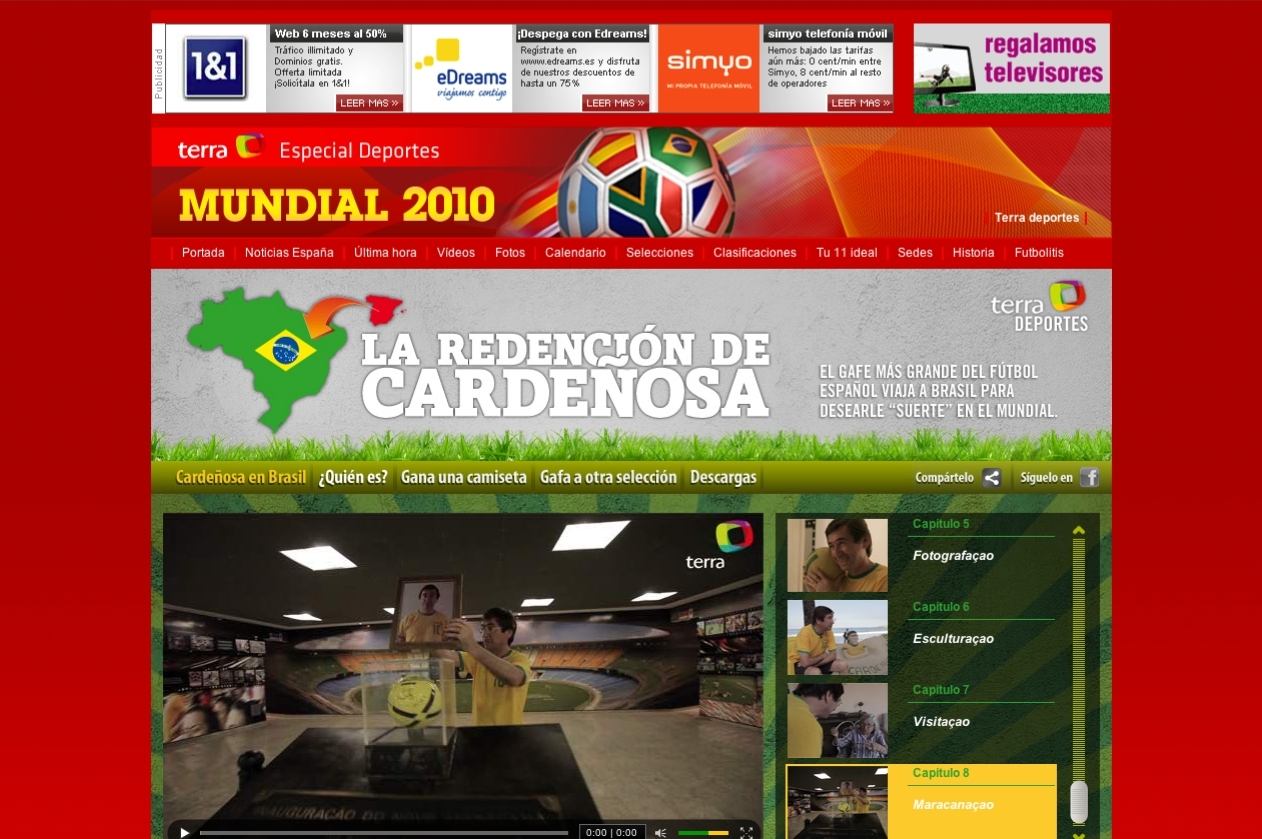 La campaña, obra de DDB, se divide en 10 capítulos realizados por la productora Pendelton que se pueden seguir en www.terra.es/cardenosa. Además, en la propia web el usuarios puede gafar a las demás selecciones enviándoles un Cardeñosa personalizado y conseguir camisetas como la que lleva el futbolista en la serie. La campaña también se ha podido ver en cine y televisión e incluye marketing directo, promocional, presencia en sites de internet y en las principales redes sociales.